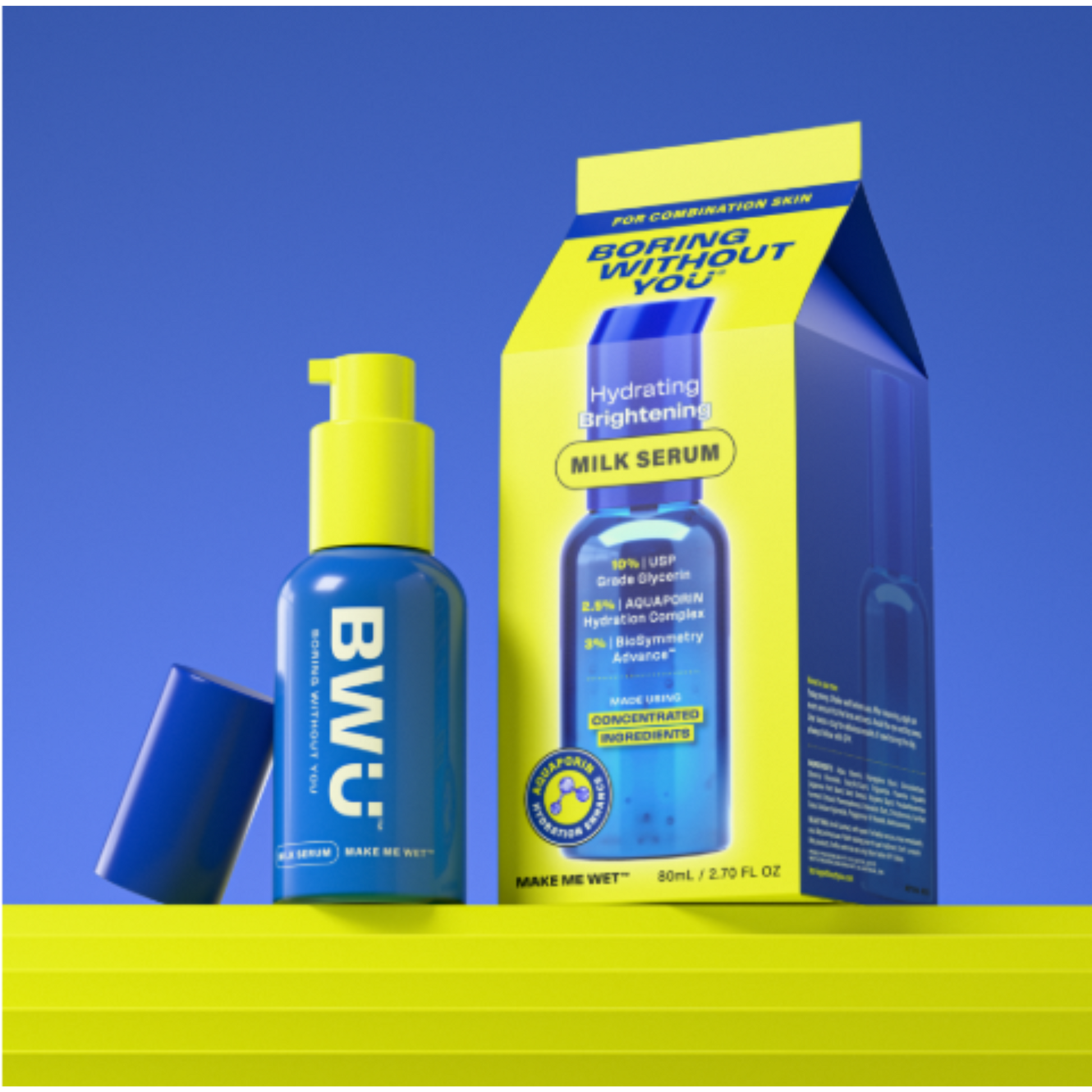 The Boring Without You Make Me Wet Aquaporin Hydrating Milk Serum drenches your skin with 10% USP grade glycerin and a blend of multi-molecular weight humectants, providing deep and long-lasting hydration. This juicy, milky serum is designed to effortlessly spread and absorb, delivering a firm, smooth, and radiant look while enhancing your skin’s natural hydration abilities with innovative Aquaporin technology. Over time, it helps your skin stay calmer, firmer, and visibly plump, leaving you with a healthy, hydrated glow that lasts.