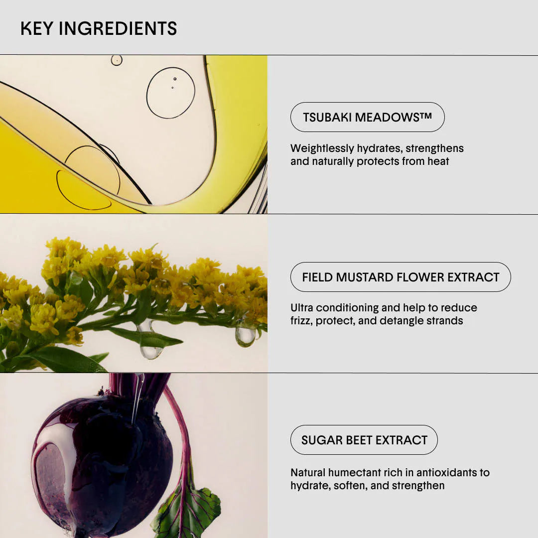 This leave in conditioner is a lightweight cream designed to hydrate, smooth and soften the hair without weighing it down. It can be used on damp or dry hair to reduce frizz and add moisture while keeping strands touchable and clean. The formula nourishes with meadowfoam seed oil and tsubaki seed oil to keep hair conditioned through the day.