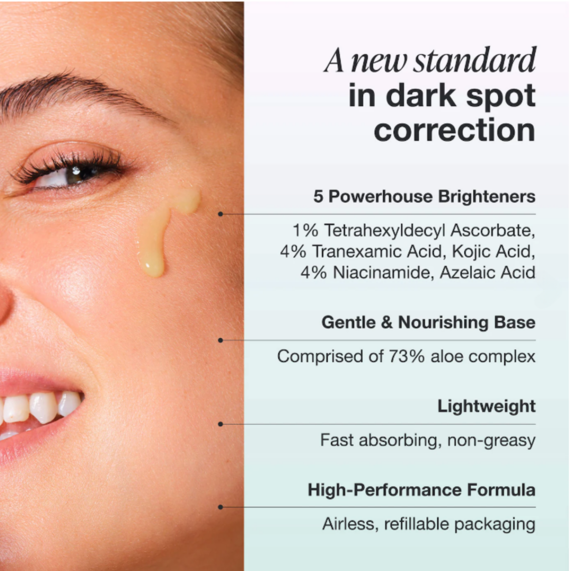 – 15% THD Ascorbate: A stable form of Vitamin C that visibly brightens and firms