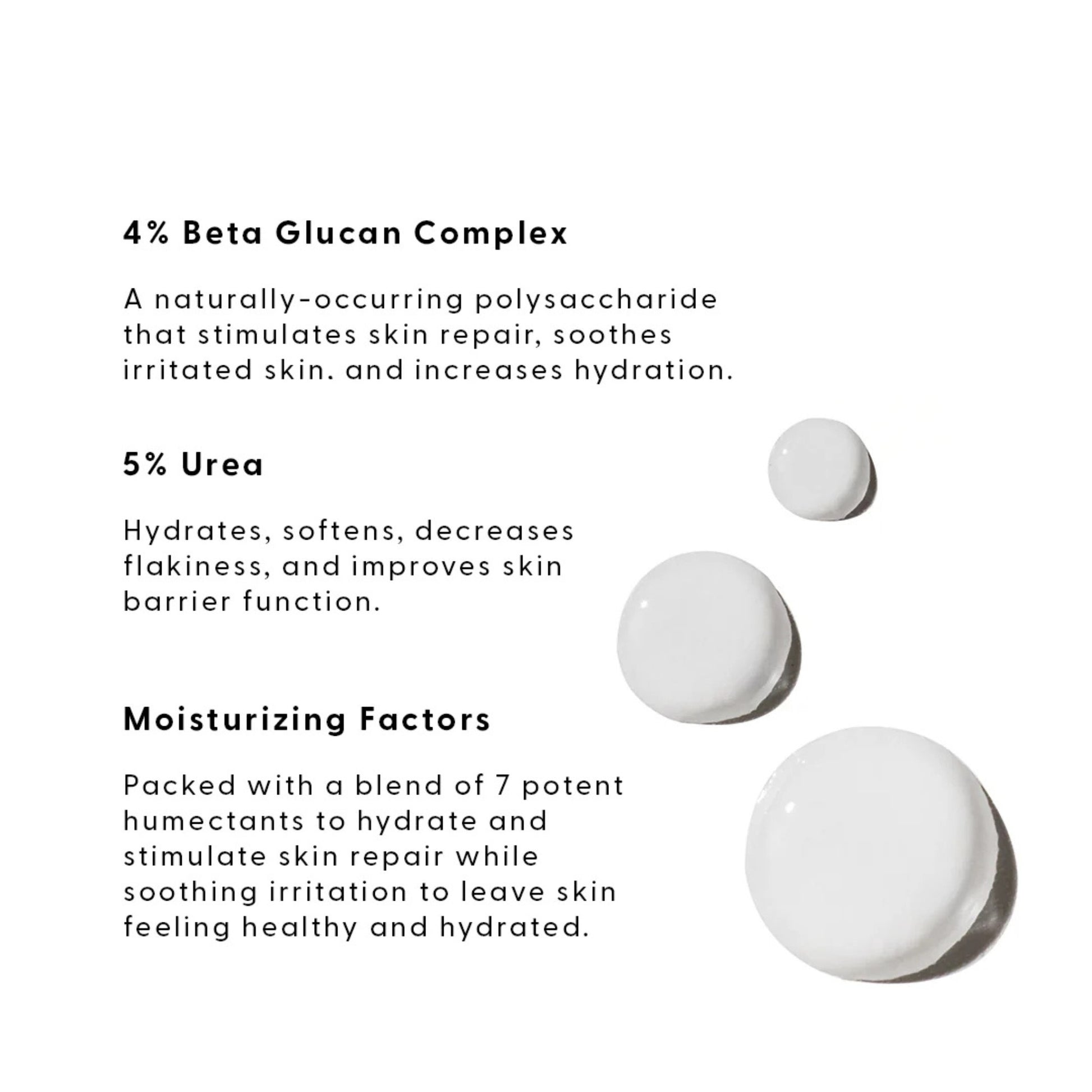 Water (Aqua), Urea, Panthenol, Sodium PCA, Glycerin, Propylene Glycol, Beta-Glucan, Allantoin, Sodium Hyaluronate, Triacetin, 1,2-Hexanediol, Caprylyl Glycol, Methylparaben, Propylparaben, Diazolidinyl Urea