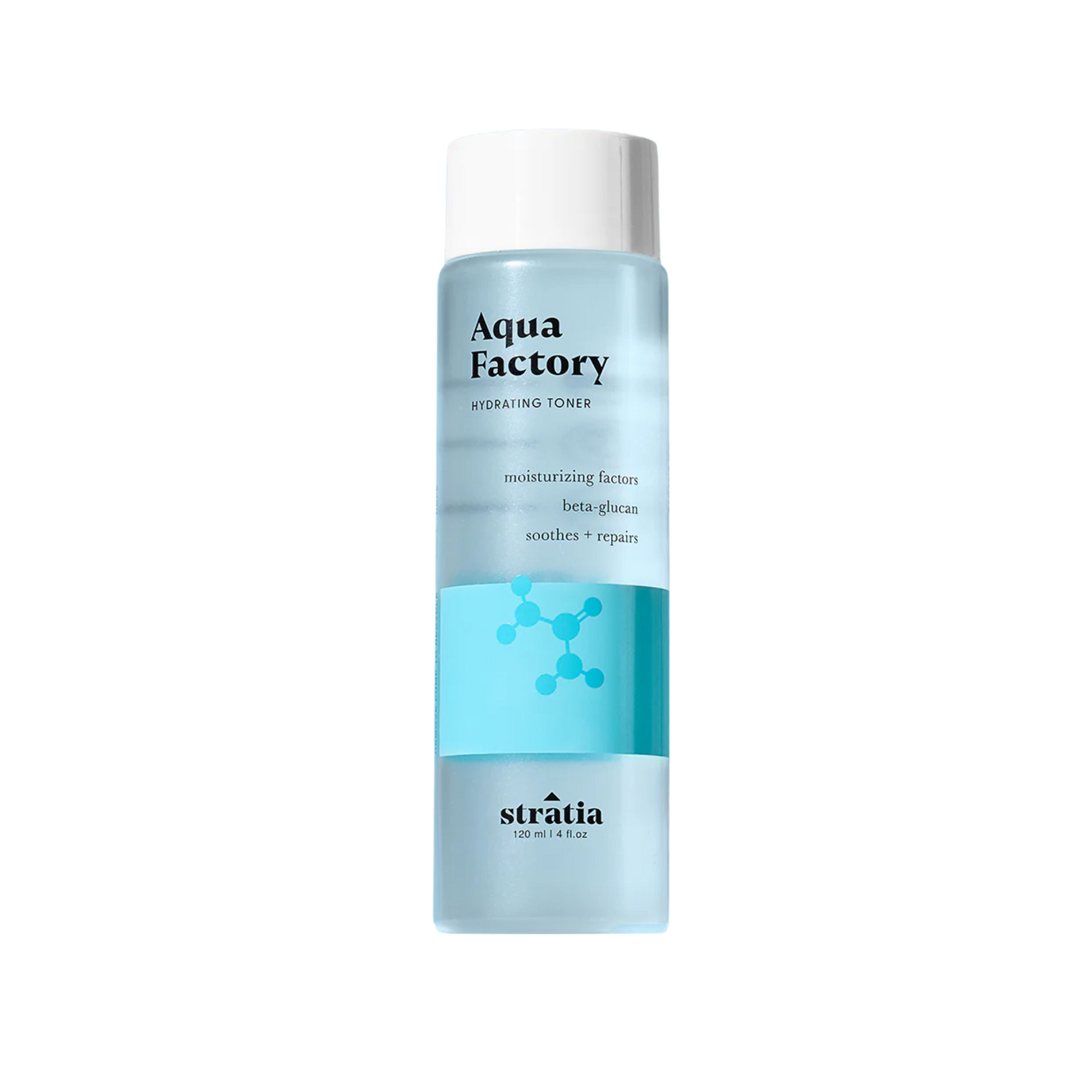 Drench your skin in deep, lasting hydration with Aqua Factory Hydrating Toner. Smooth, soothe, and repair with 5% Urea, 4% Beta-Glucan Complex, and a blend of 7 potent humectants to hydrate and stimulate skin repair while soothing irritation. An invisible, weightless surge of all-day hydration for bouncy skin and a strong skin barrier.